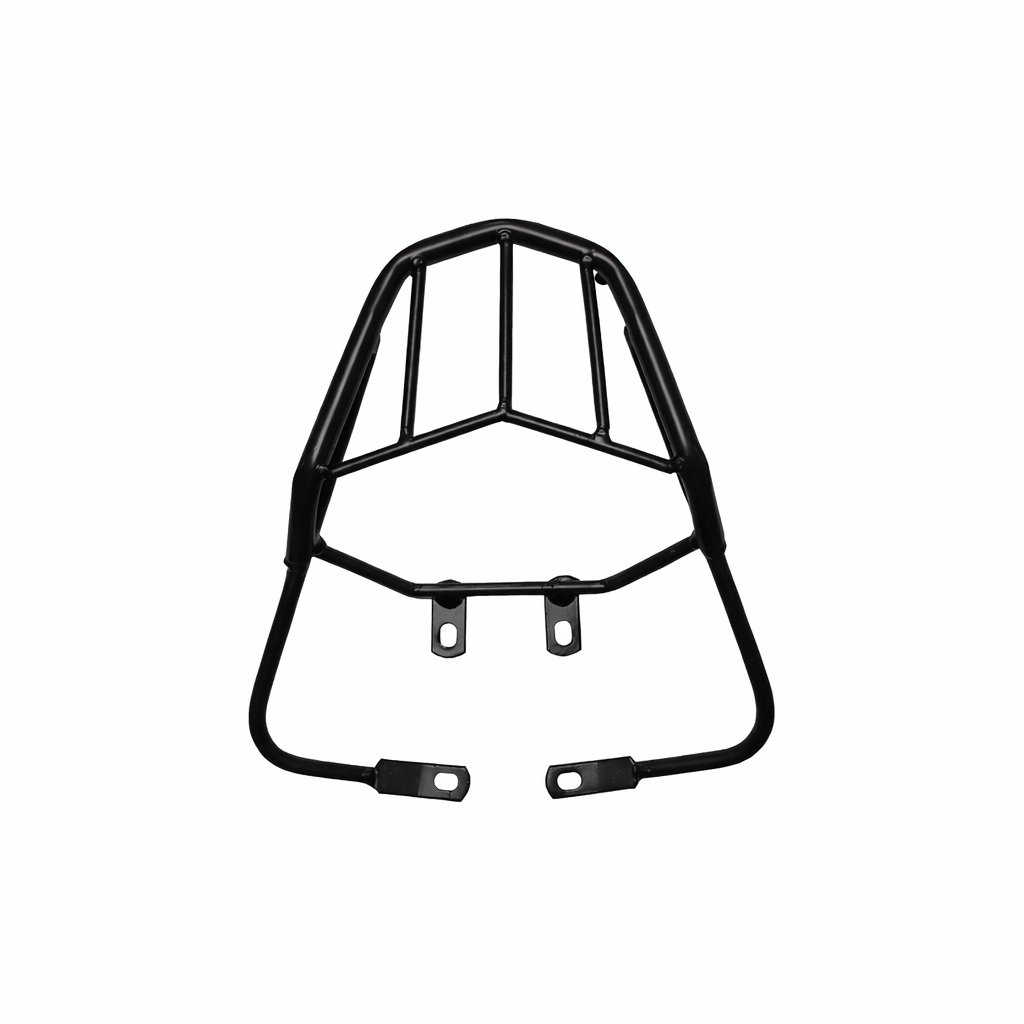Bagageiro traseiro preto, resistente e funcional, ideal para transporte de mochilas, caixas ou baús no dia a dia.