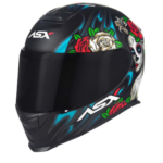 Capacete Unissex Fechado para Moto ASX Eagle Catrina Fosco Preto Azul Vermelho.