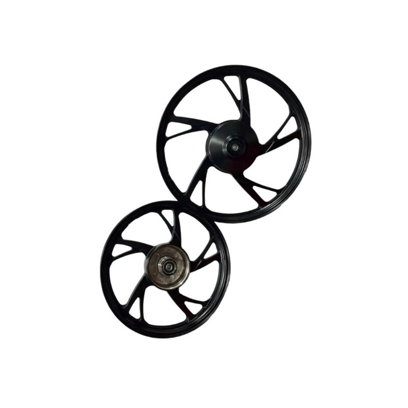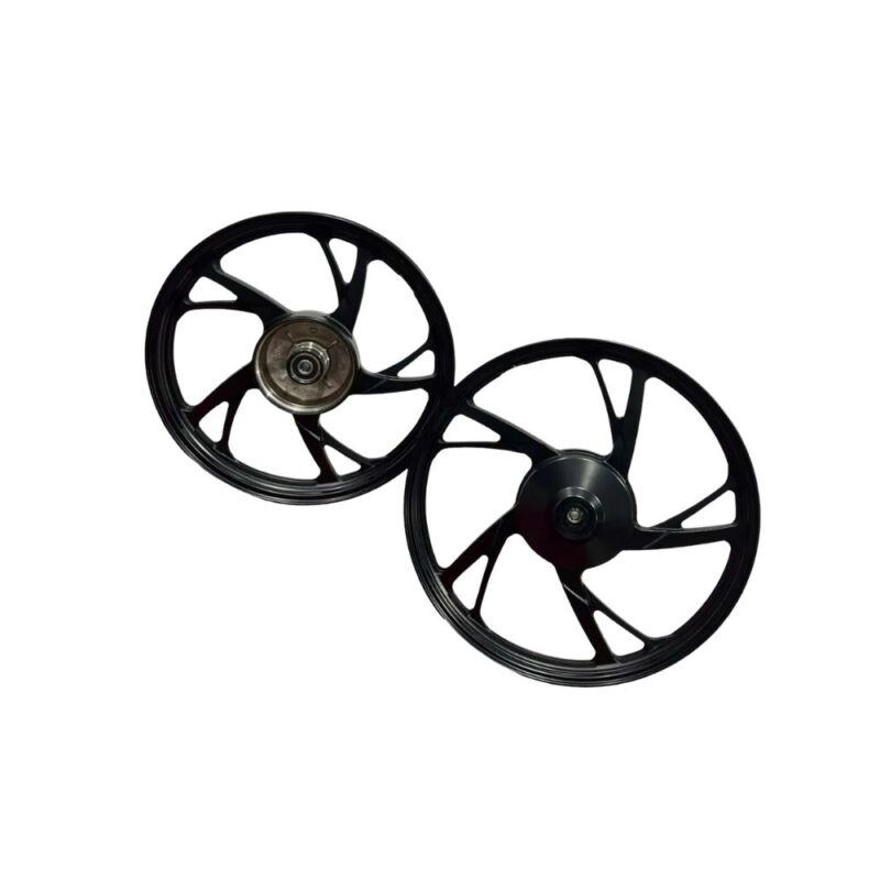 Par de rodas de liga leve Smartfox, modelo Pé de Galinha / 5 Palitos, desenvolvido para oferecer visual esportivo, mais leveza, maior resistência e melhor desempenho para sua Honda Biz.